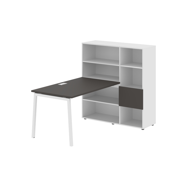 Столешница глубиной 800 мм, комплектуется регулируемой опорой L-образной формы из профиля трубы 40х40, комплектом телескопических траверс и двумя кронштейнами для крепления к стеллажу.