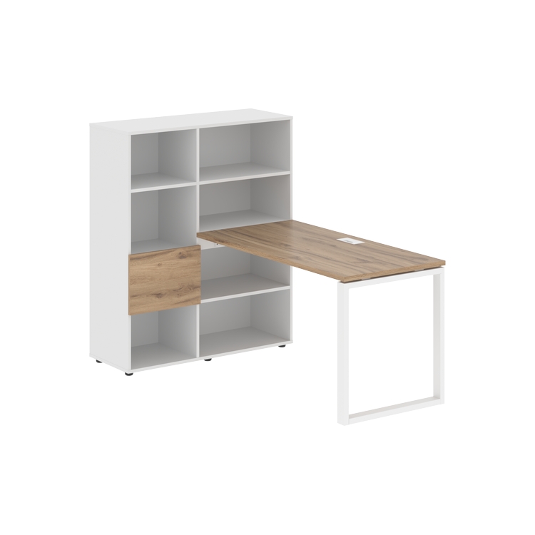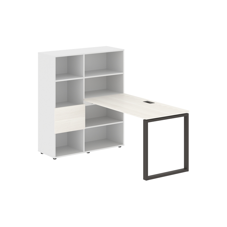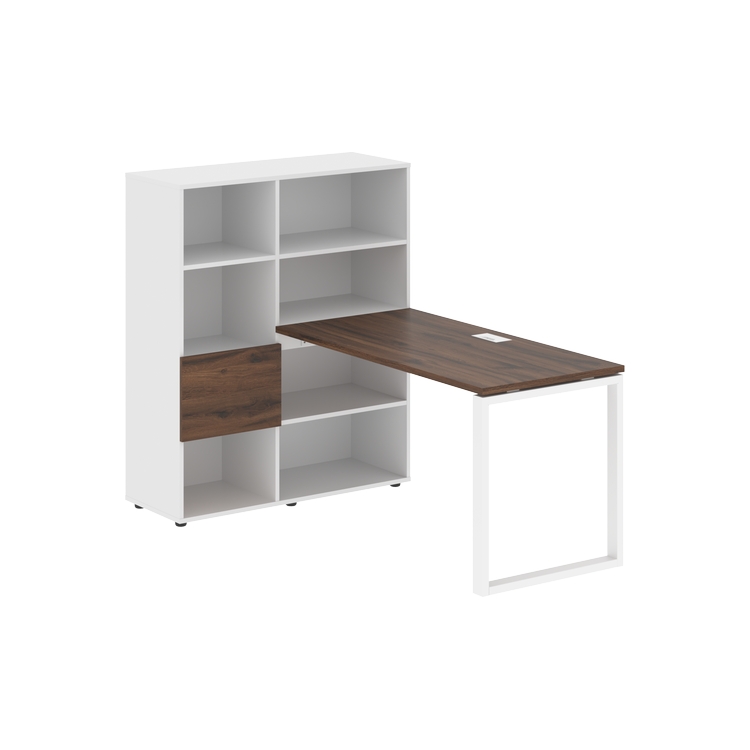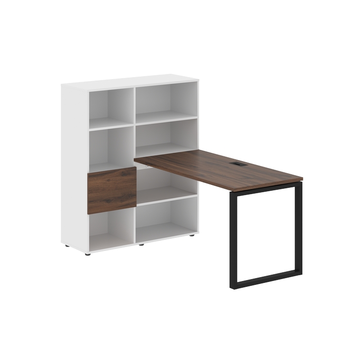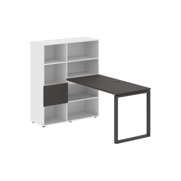Каркасы стеллажей полностью из ЛДСП т.18 мм с кромками ПВХ т.2 и 0,45 мм, задняя стенка из ЛДСП. Комплектуется малой дверью в цвет столешницы и регулируемыми опорами h= 27 мм.