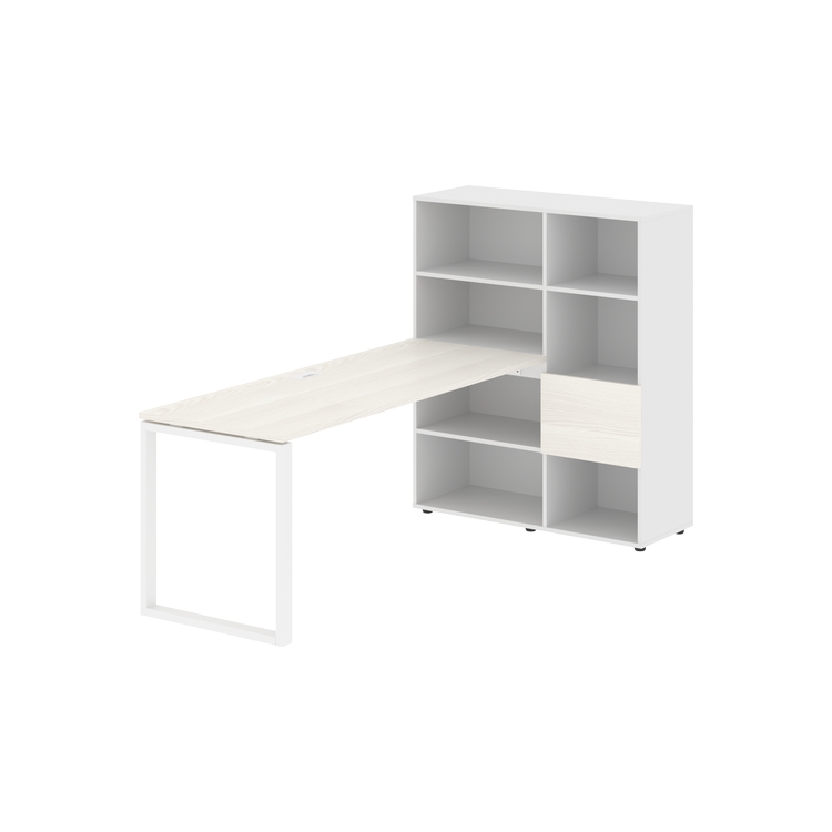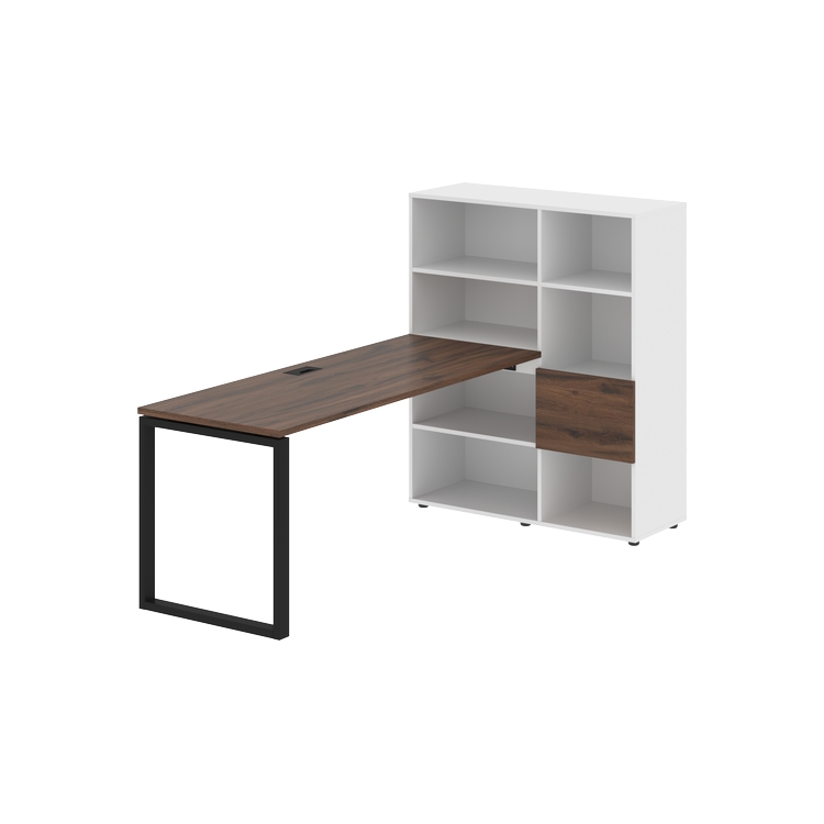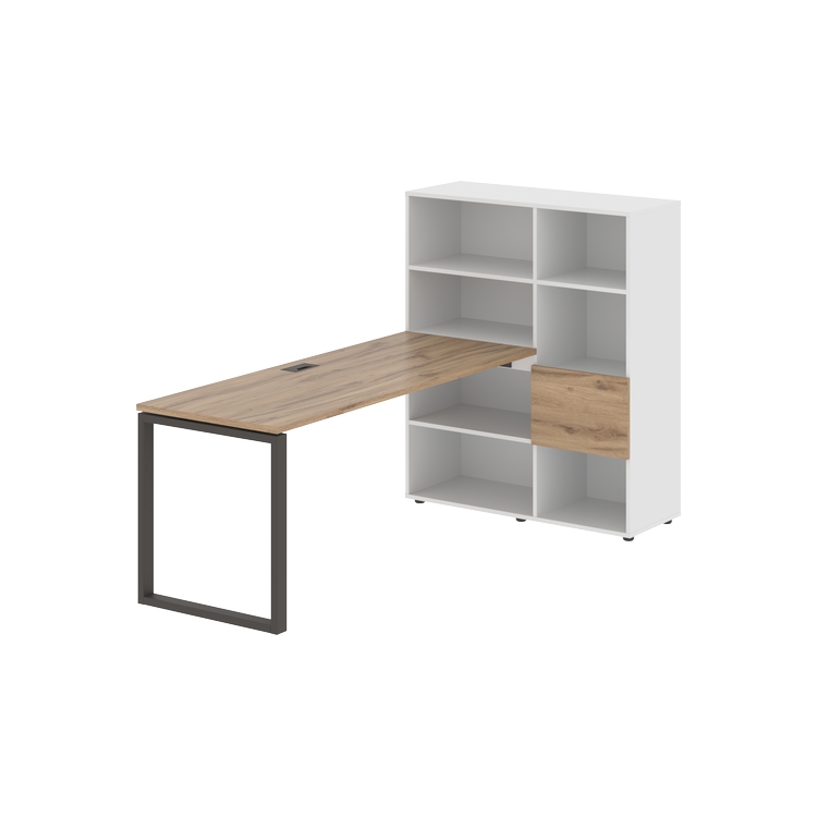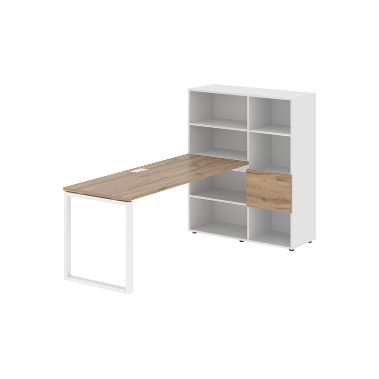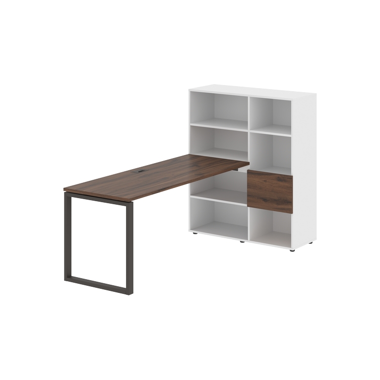Каркасы стеллажей полностью из ЛДСП т.18 мм с кромками ПВХ т.2 и 0,45 мм, задняя стенка из ЛДСП. Комплектуется малой дверью в цвет столешницы и регулируемыми опорами h= 27 мм.