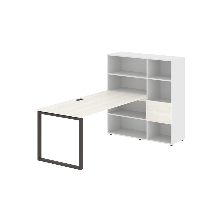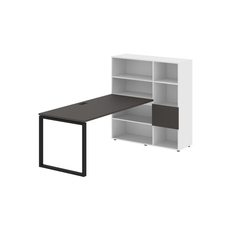 Столешница глубиной 800 мм, комплектуется регулируемой опорой О-образной формы из профиля трубы 60х30, комплектом телескопических траверс и двумя кронштейнами для крепления к стеллажу.