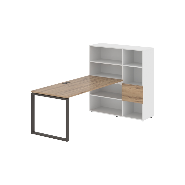 Каркасы стеллажей полностью из ЛДСП т.18 мм с кромками ПВХ т.2 и 0,45 мм, задняя стенка из ЛДСП. Комплектуется малой дверью в цвет столешницы и регулируемыми опорами h= 27 мм.