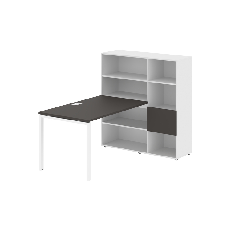 Столешница глубиной 800 мм, комплектуется регулируемой опорой П-образной формы из профиля трубы 60х30, комплектом телескопических траверс и двумя кронштейнами для крепления к стеллажу.