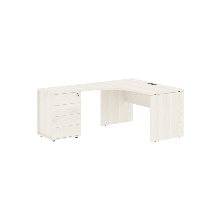 Столешница стола из ЛДСП т.25 мм с кромками ПВХ по периметру т.2 мм. Комплектуется металлическим кабель-каналом габаритом 160х80х25 мм. Опоры из ЛДСП т.18 мм с регулируемыми опорами внизу.