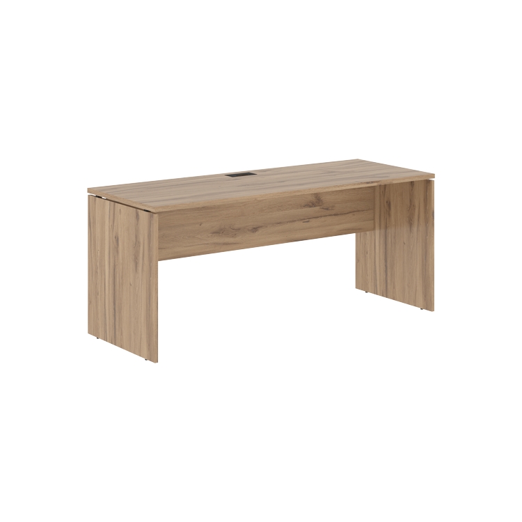 Столешница из ЛДСП т.25 мм с кромками ПВХ по периметру т.2 мм. Комплектуется металлическим кабель-каналом габаритом 160х80х25 мм, в цветах. Опоры из ЛДСП т.18 мм с регулируемыми опорами внизу.