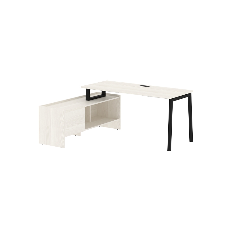 Столешница глубиной 670мм из ЛДСП т.25 мм с кромками ПВХ по периметру т.2 мм. Комплектуется металлическим кабель-каналом габаритом 160х80х25 мм.