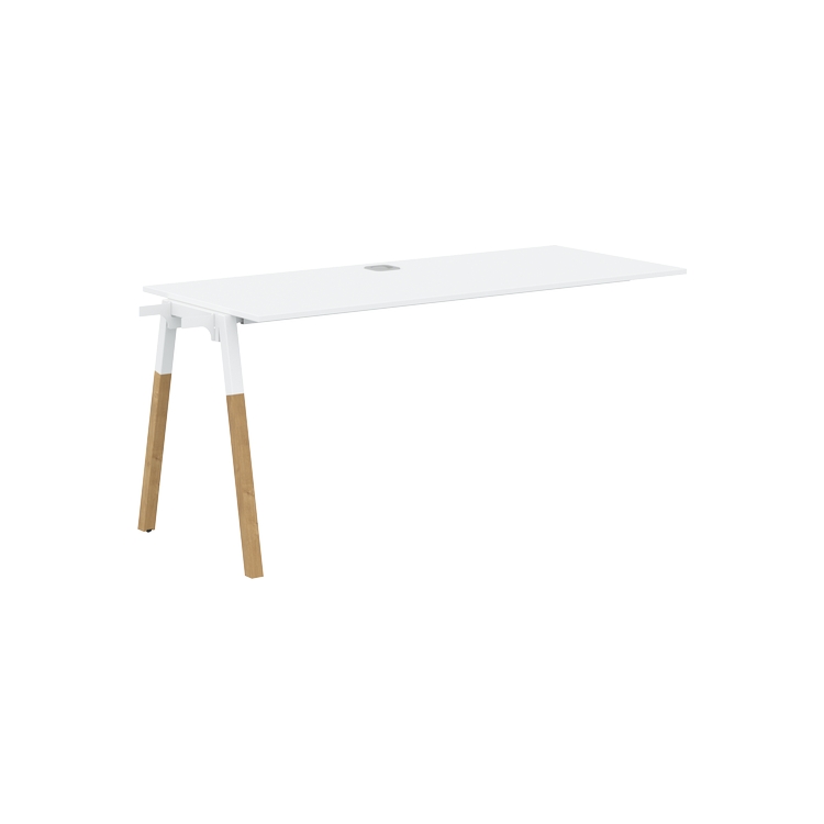 Столешница ЛДСП т.18мм. c кромкой ABS т.2.мм, комплектуется квадратной заглушкой кабель-канала по центру, 2-мя траверсами и промежуточной комбинированной опорой А-образной формы, верхняя часть из профиля трубы 40х40мм и нижняя часть из материала – бук; отделка – масло-воск.