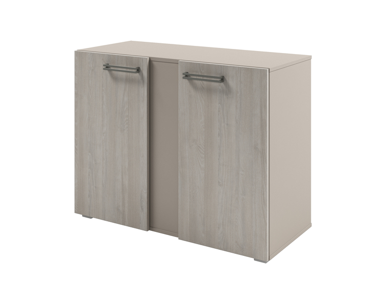 Шкаф для документов низкий с распашными дверьми.