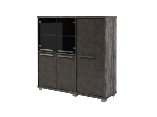 Слева в двух секциях в нижней части - двери ЛДСП, сверху - стеклянные двери.